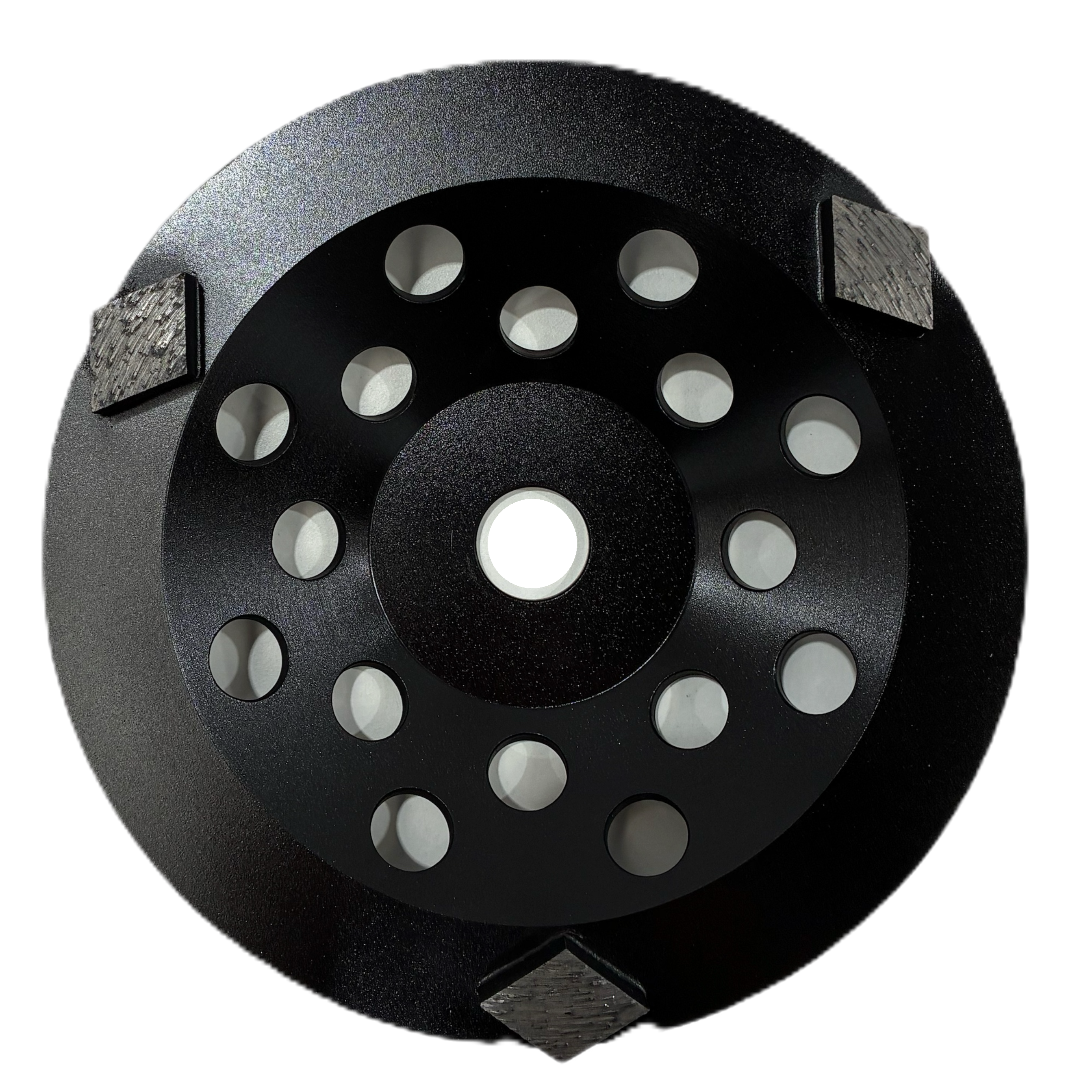 The 180mm Black Diamond Cup Wheel with 3 diamond-shaped segments in 16 grit and a soft bond is built for super aggressive material removal and heavy grinding applications. With a low segment count and coarse grit, this cup wheel delivers maximum bite into hard concrete, thick coatings, adhesives, and stubborn surface build-up. The diamond-shaped segments concentrate pressure onto the slab, allowing for fast stock removal where speed and aggression are critical.